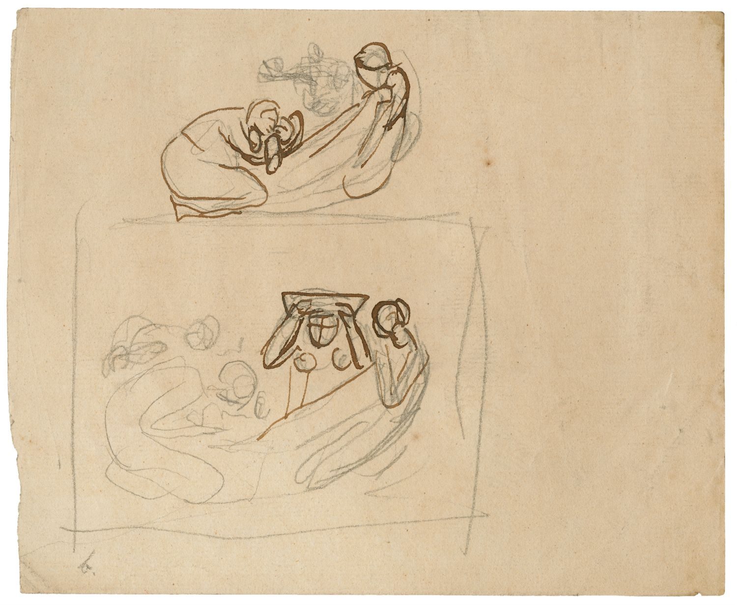 Romney’s sketchbooks show that he worked on ideas for infant Shakespeare compositions off and on for 15 years, mixing and matching various elements. These sketches in the Folger collection, shown below, are just a few of the many that still exist today.