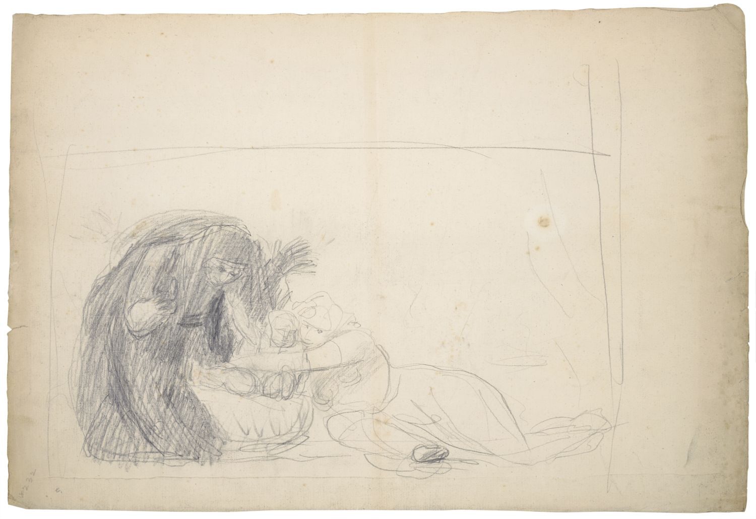 The Infant Shakespeare Attended by Nature and the Passions is, without a doubt, one of the strangest paintings in the Folger collection. It is the work of British artist George Romney (1734–1802) and at first glance could be mistaken for a depiction of the Christian Nativity.