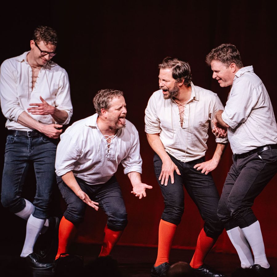 SWEN: I would say I was an improv guy first. I liked Shakespeare a lot. I had performed Shakespeare. I’d been Mercutio in Romeo and Juliet in high school and really loved doing that and then performed in The Winter’s Tale in college. So, I had done some Shakespearean plays and I enjoyed watching Shakespeare. But I would describe myself more as a Monty Python guy at the time than a Shakespeare guy, and so, the show started out, at first, as more of a parody of Shakespeare. And the way that it evolved to become better was when we started to lean into the Shakespeare portion of the show more seriously. We would start to try to write a love letter to Shakespeare instead of a parody of Shakespeare, and that’s when the show really started taking off and the comedy got better.